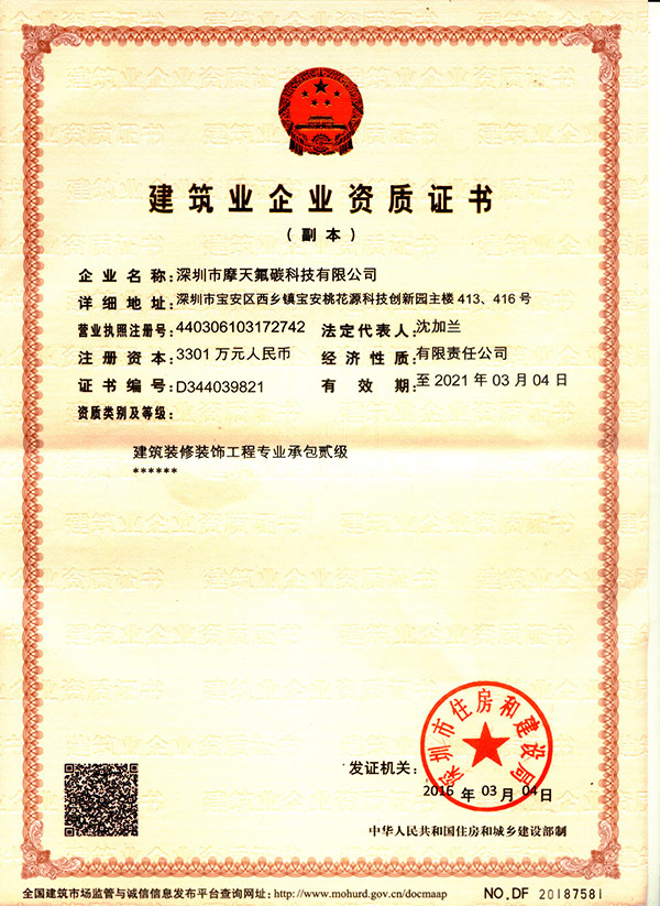 氟碳涂料及其配套材料的研究、生產、施工于一體的企業,有貳級施工資質
