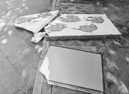 7月5日上午9點多,三箭平安苑小區一居民樓3樓陽臺外墻上掉下來一塊保溫板,現場可看到,摔壞的保溫板表面有粘貼砂漿的痕跡,不過涂抹砂漿的位置僅有幾個點。